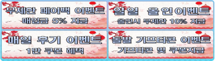 • 신규 가입 이벤트는 첫 충전 후 홈페이지 내의 라이브 채팅이나 고객 센터로 신청하셔야 정상적으로 이벤트에 참여 가능