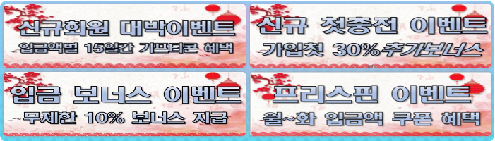 • 10만 원 입금 시 : 가입 첫 보너스 + 신규 가입 감사 쿠폰 2만 원 별도 지급