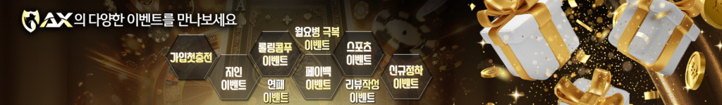 신규 회원을 위한 첫충 이벤트부터 정기적인 페이백, 출석, 추천 이벤트까지 다양한 보너스 혜택이 운영되고 있습니다. 이러한 프로모션은 게임의 재미를 더하고 참여 동기를 강화합니다. 특히 주 단위, 월 단위로 진행되는 특별 이벤트는 추가 보상을 제공하여, 꾸준히 참여하는 회원들에게 더욱 큰 즐거움을 줍니다.