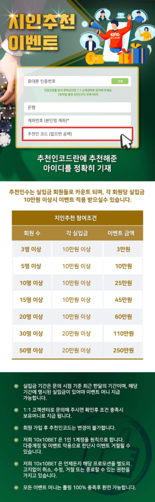 지인들과 함께 텐텐벳에 가입하고, 추천 보상도 챙길 수 있는 기회를 놓치지 마시길 바랍니다.