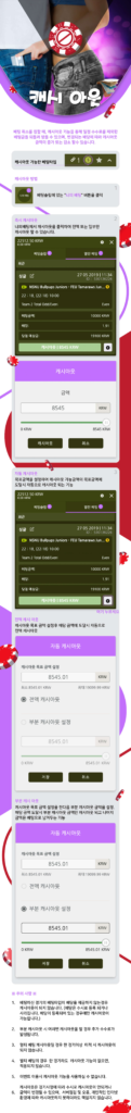- 특정 베팅 방식이나 조합의 경우, 캐시아웃 기능이 제공되지 않을 수 있습니다.