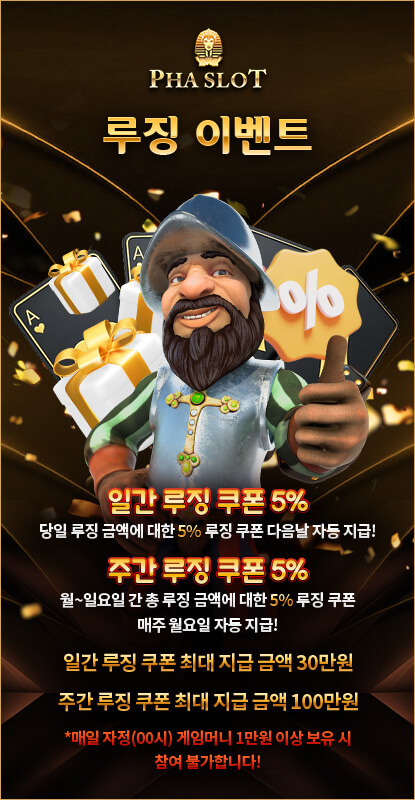 파라오슬롯에서는 이용 중 발생한 손실(루징)에 대해 자동으로 보상을 지급하는 루징 쿠폰 이벤트를 운영 중입니다.