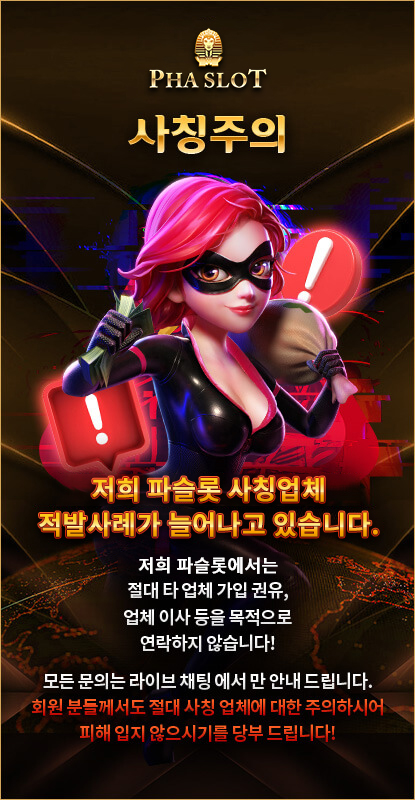 • 파라오슬롯 명의의 모든 외부 채널은 공식 텔레그램 및 사이트 내부만 인정됩니다.